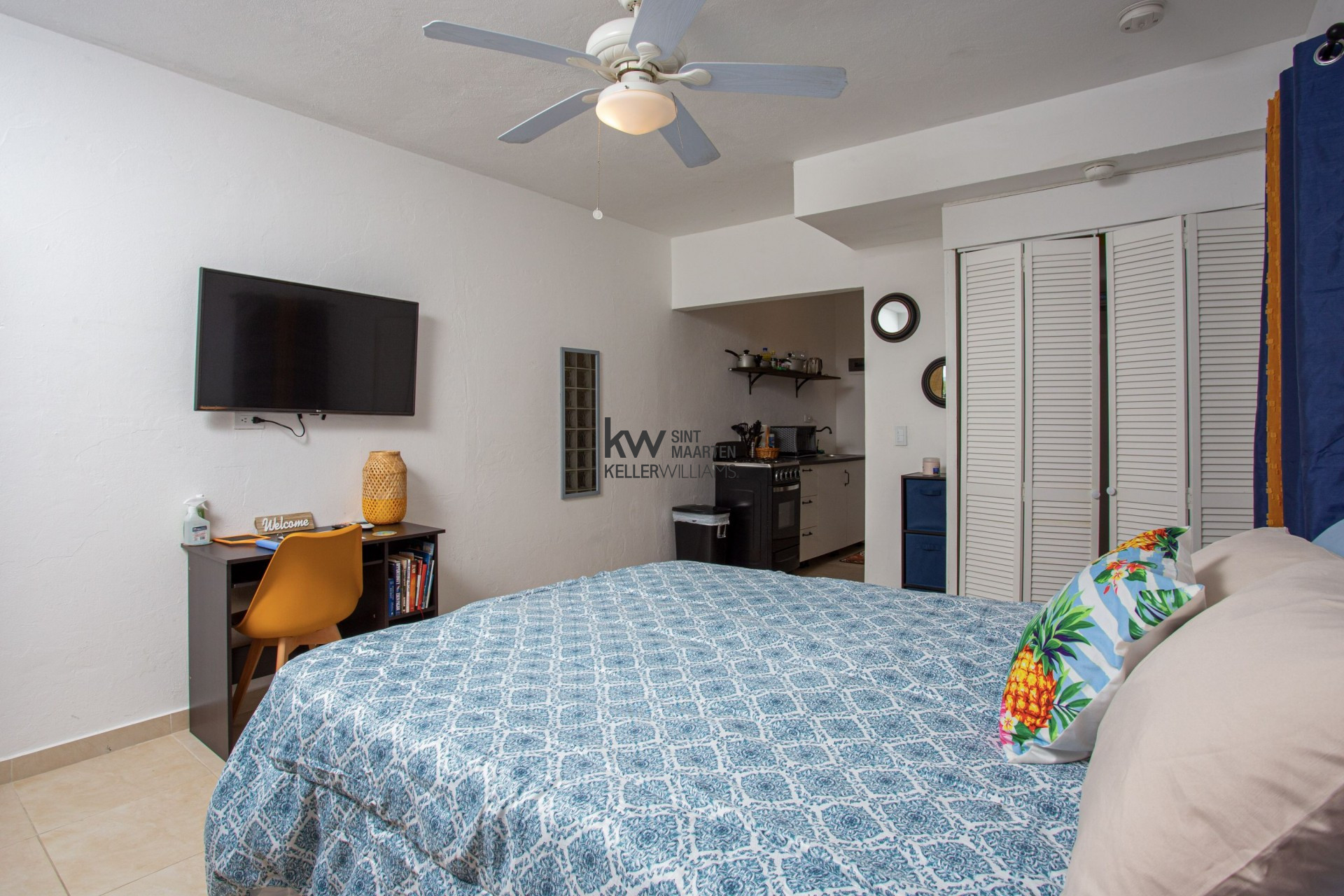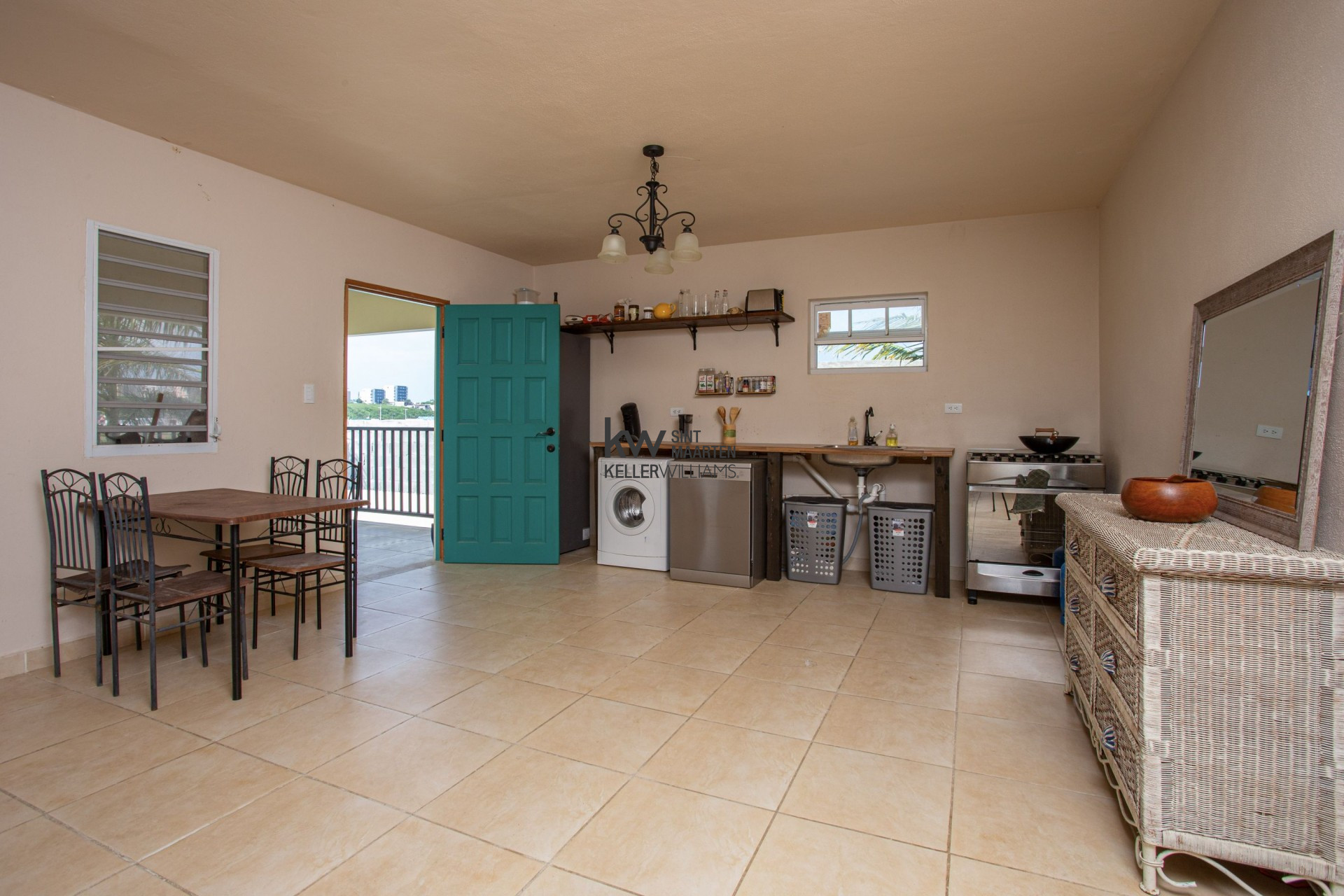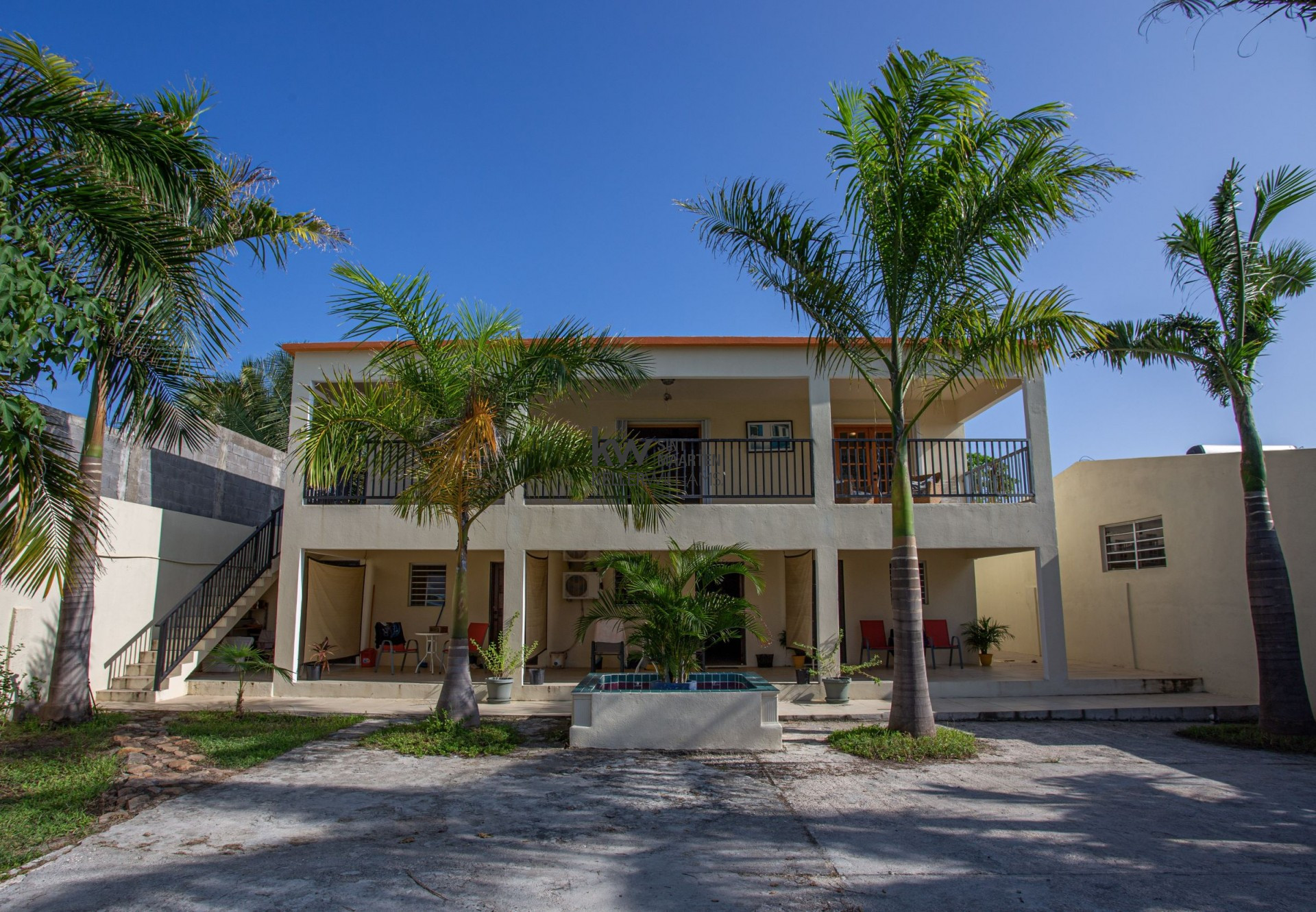 The ground floor consists of 5 studio apartments, all ideal for Airbnb or long term rentals. The upper floor is a spacious 3 bedroom penthouse with wrap around porch overlooking the landing strip of Princess Juliana International Airport. There is expansion possibility to make a comfortable rooftop terrace with expansive island and ocean views.
