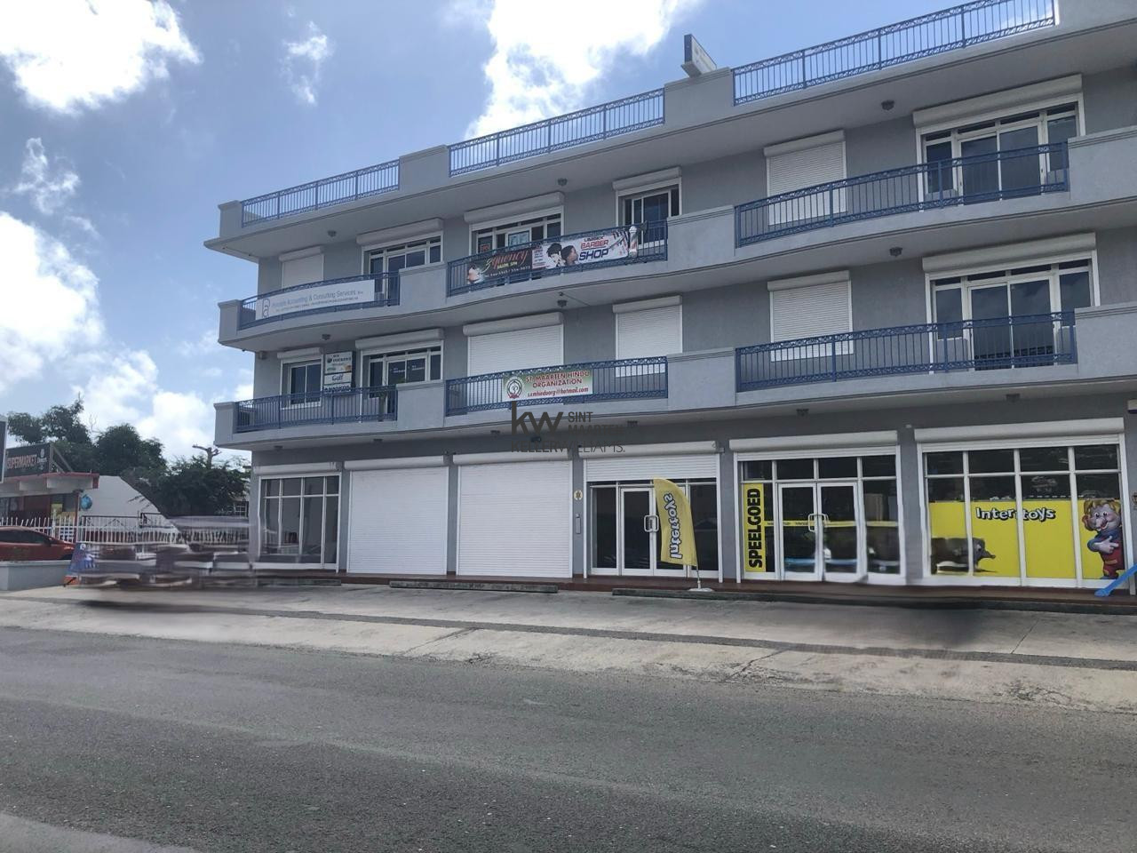 Ideally located on the main thoroughfare in Simpson Bay, ample parking at the rear of the building, a/c units and hurricane shutters.
