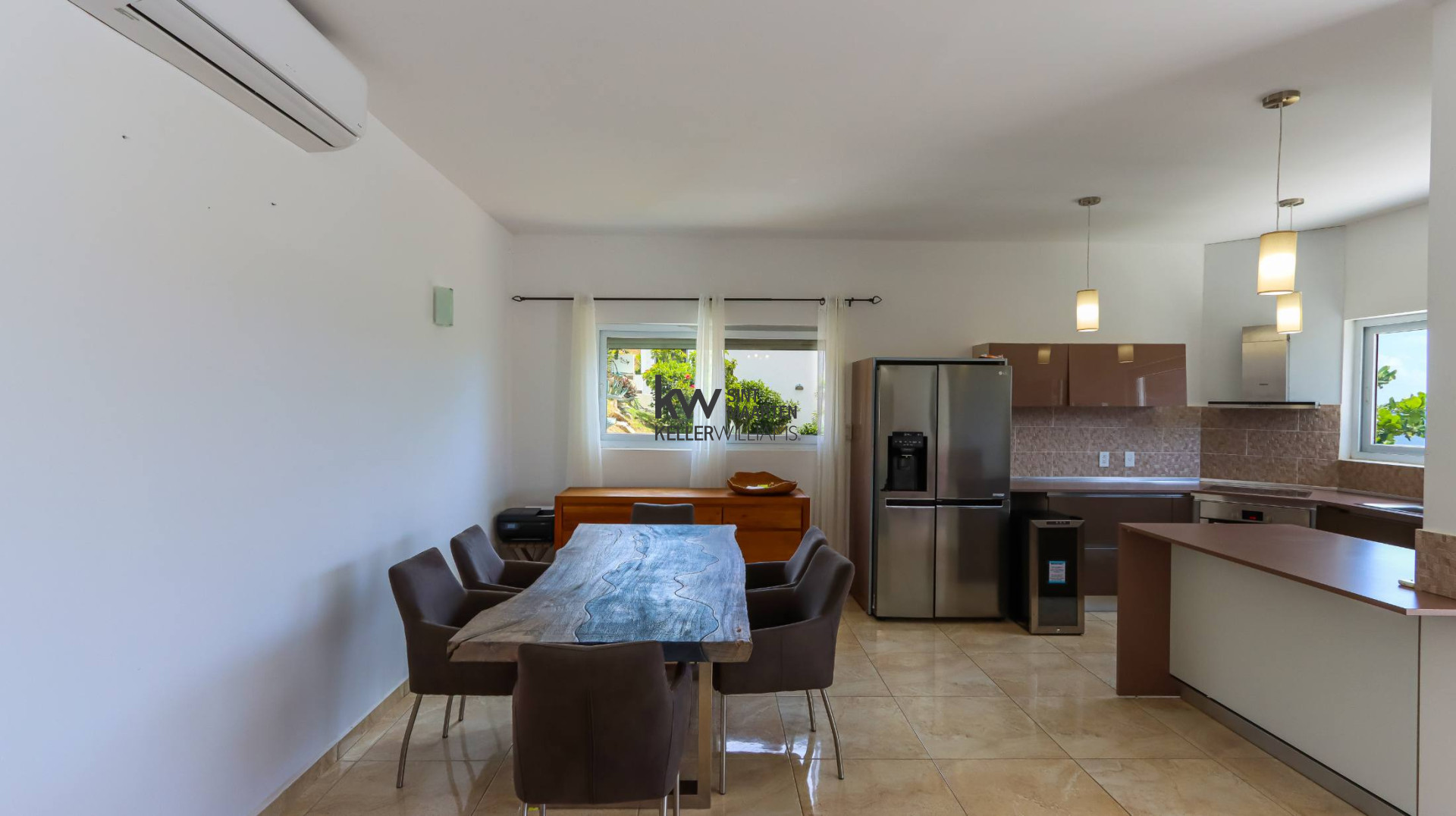 Air conditioning, ample storage, and stylish furnishings throughout