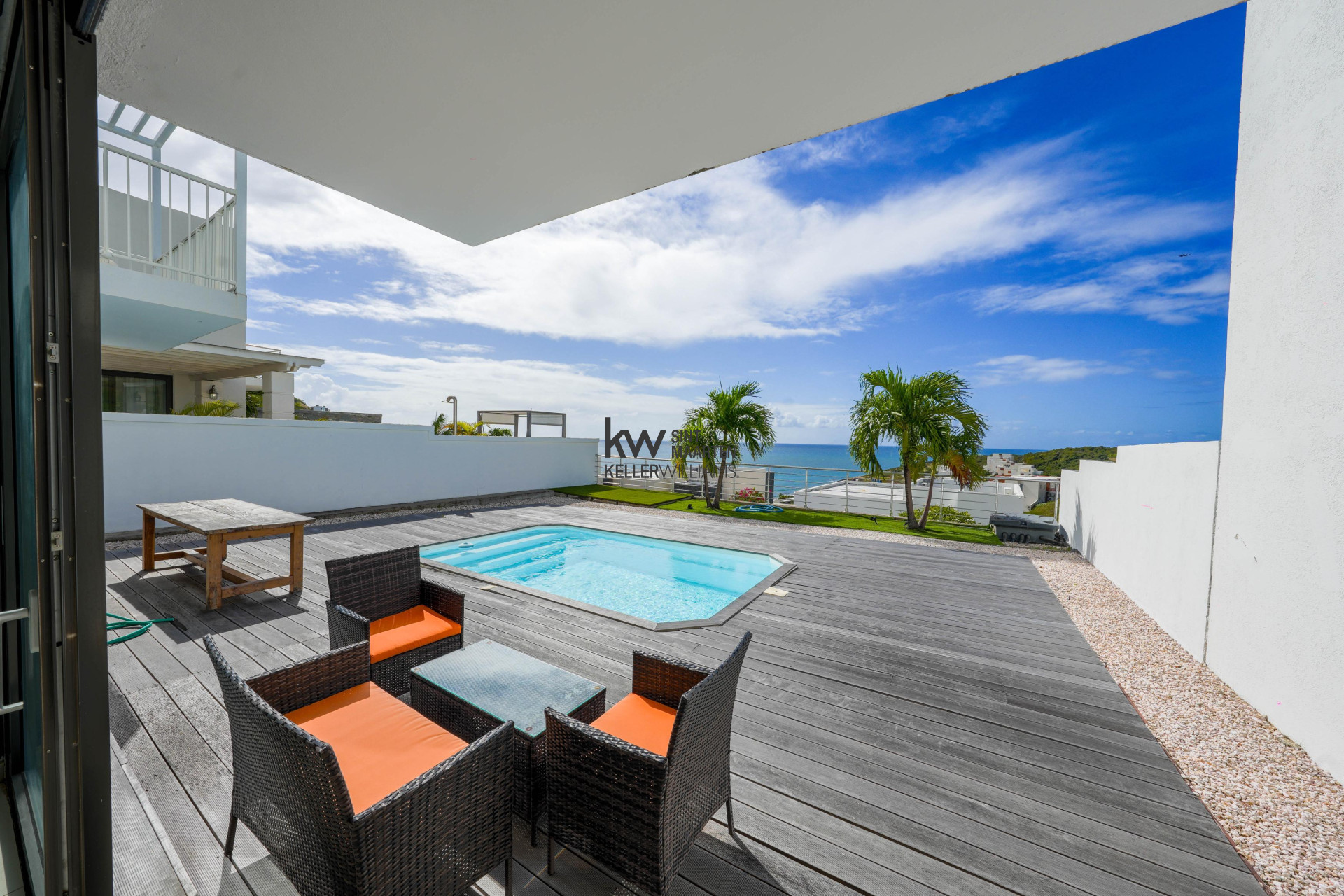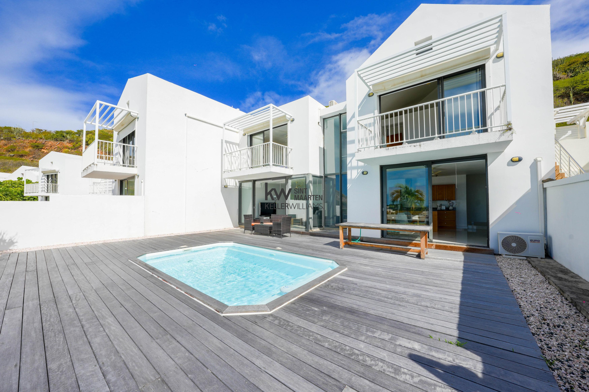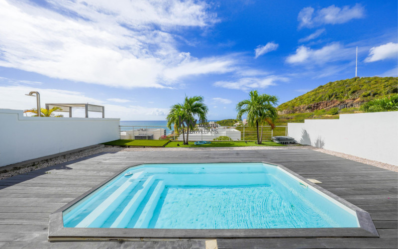 Highlights: Sea & Saba views • Gated Indigo Bay • 3rd room = office/kids room • Private pool & deck • Insulated + A/C throughout • Furnished/turnkey • Walk to the beach • Strong rental potential