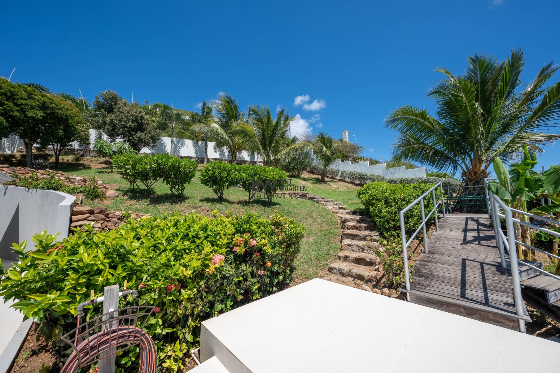 A beautifully maintained garden space to the left of the villa—fully walled and private