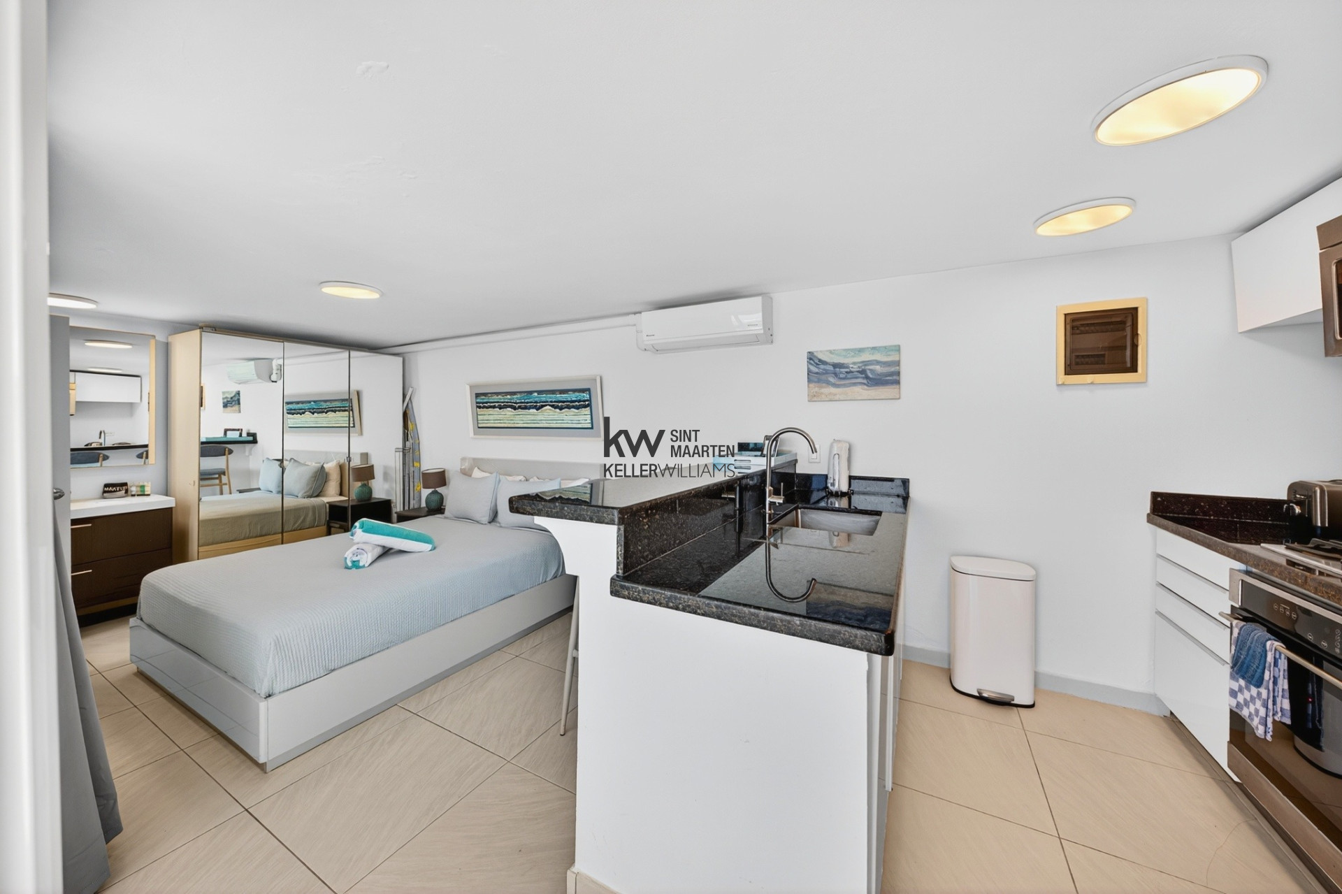 Open-plan bedroom and living area